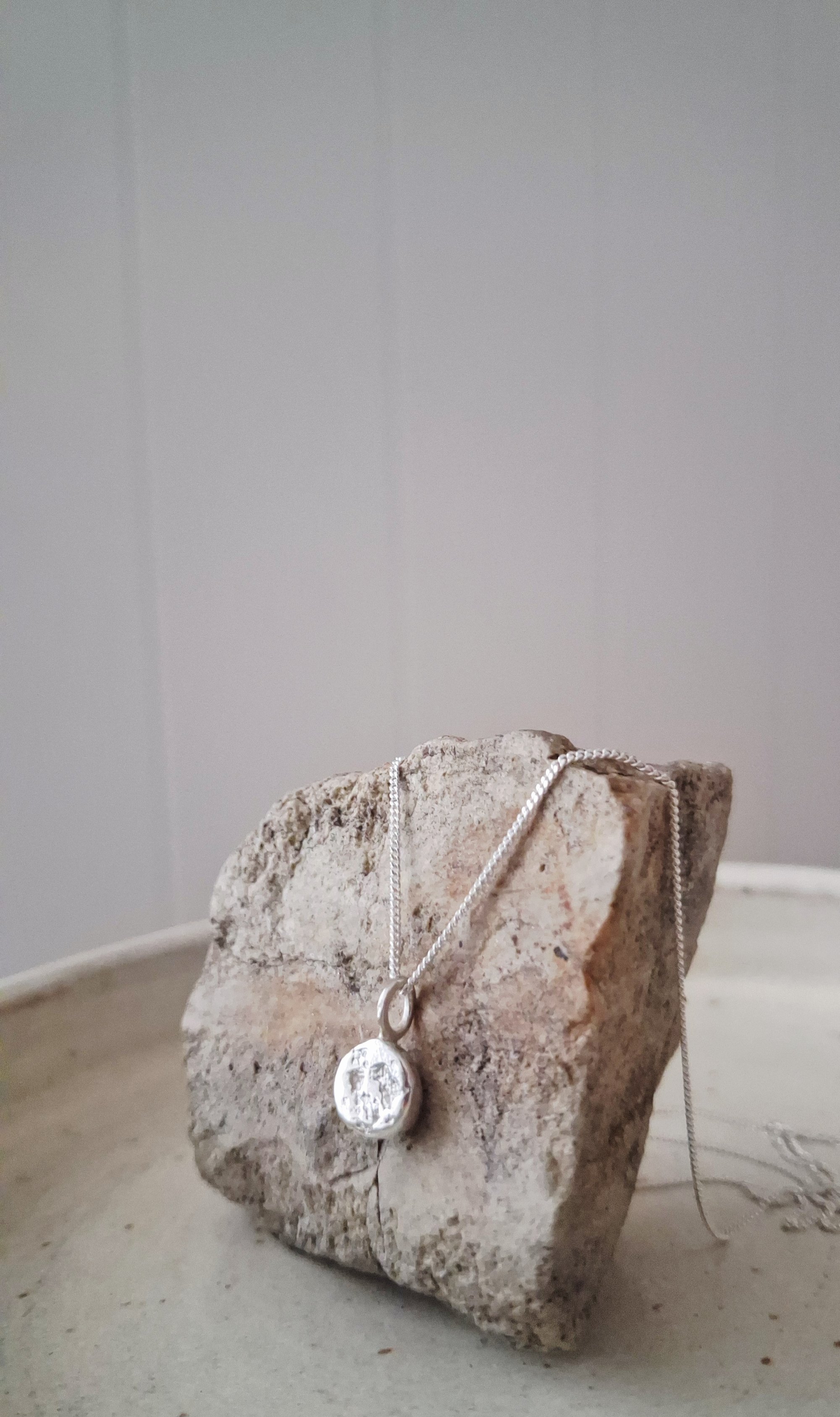 The gorgeous organic surface of this pendent has a subtle delicate raw like quality that has come directly from the rock textures giving it a beautiful tactile quality to the touch and that catches the light when worn.